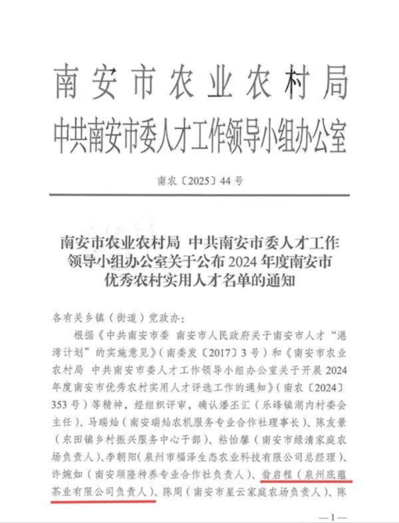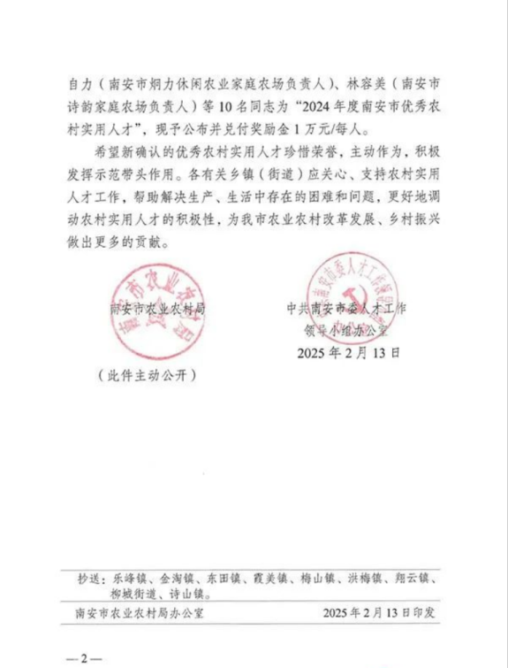 “2024年度南安市优秀农村实用人才”