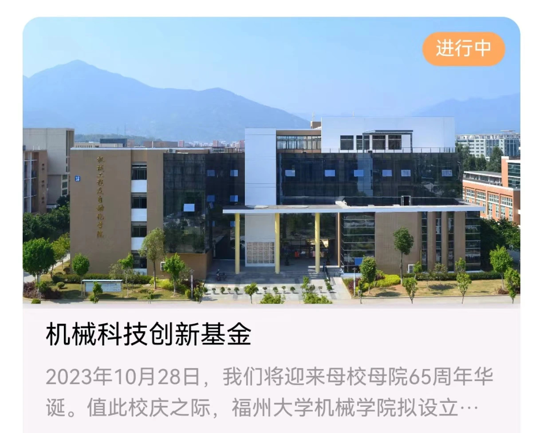 诚邀您助力福大“机械科技创新基金”!请长按二维码,识别进入“机械科技创新基金”小额捐赠平台,为机械学院加油吧!