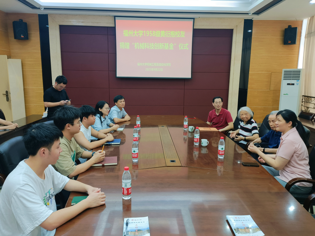 捐赠仪式后,黄衍抱校友还与学院学生代表进行了亲切座谈,寄语机械学子珍惜良好的学习环境,勤奋学习、掌握技能、增强本领,在思想和学习上争做先进青年,更好地服务国家和社会贡献机械青年的智慧和力量。