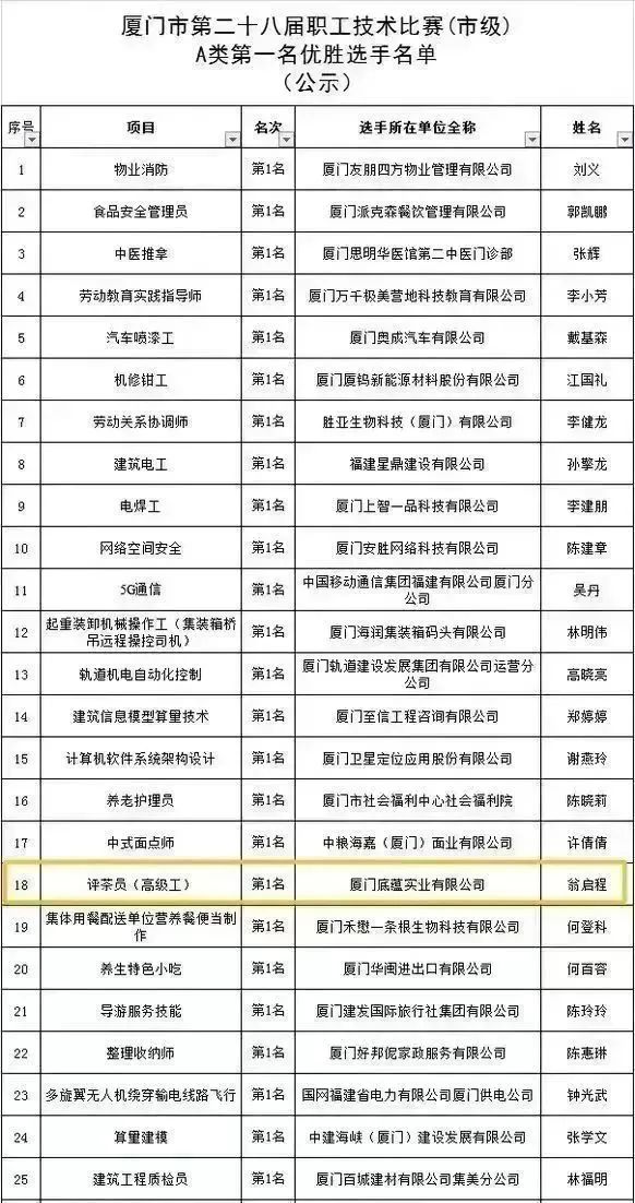 厦门校友会党支部书记翁启程,荣获厦门市第二十八届职工技能竞赛市级A类(评茶员(高级工)技术竞赛)第一名,2022年度厦门行业(数字)工匠。
