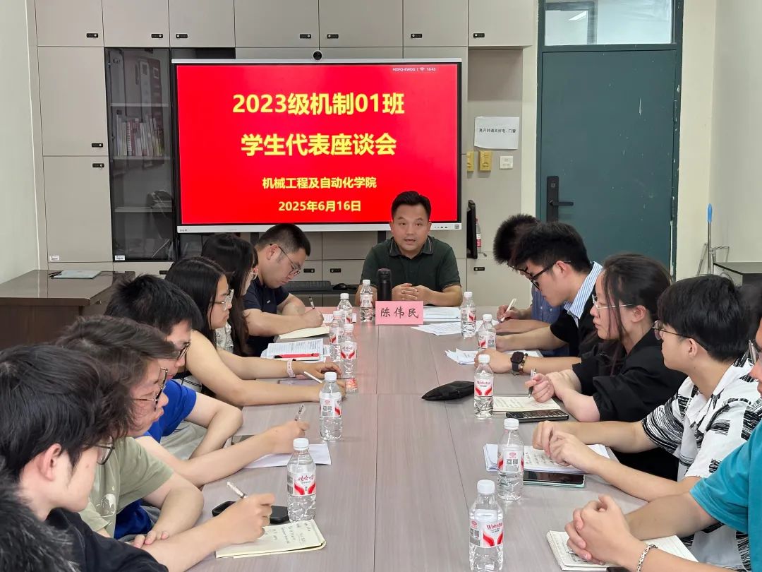 为加强学院领导深入一线联系学生工作,倾听学生心声,助力学生成长成才,6月16日,学院党委书记陈伟民与所联系班级2023级机制1班学生代表进行座谈交流。学院团委副书记李辉容、2023级机制1班班主任顾天奇、2023级本科生辅导员陈妙娜及部分学生代表参会。