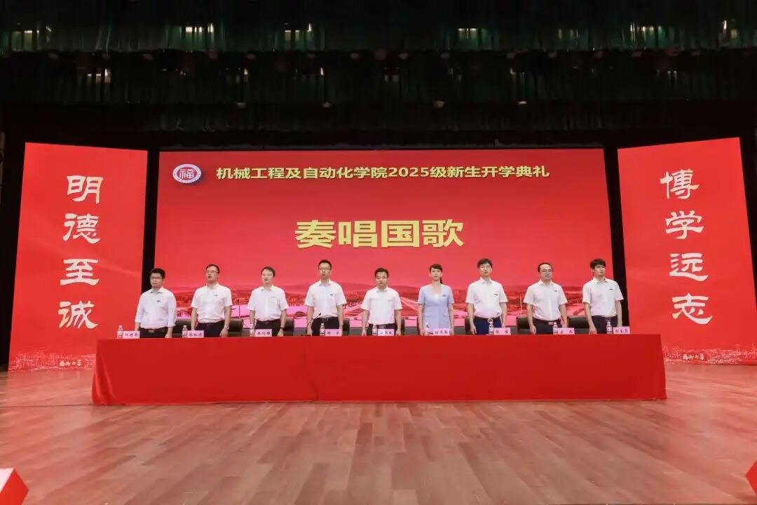 学院党委陈伟民书记,负责学院行政全面工作副院长任志英教授,学院副院长张俊教授,2005级优秀院友、机械泉州校友分会副会长、泉州鑫科自动化设备有限公司董事长庄培成校友,院长助理陈剑雄教授、梁伟教授,车辆工程系主任林歆悠教授,材料成型系主任邓将华教授,机械设计系主任郭金泉教授,机器人工程专业点负责人张立伟教授,学院党委办公室、行政办公室、团委、教学办公室有关负责同志,全体专职辅导员、专业教师代表,2025级本科班主任以及全体2025级新生参加本次开学典礼。典礼由院党委副书记兼纪委书记谢武主持。