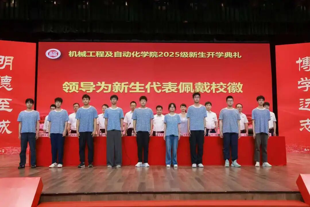 学院领导为新生代表佩戴校徽,希望机械学子秉承海角视频