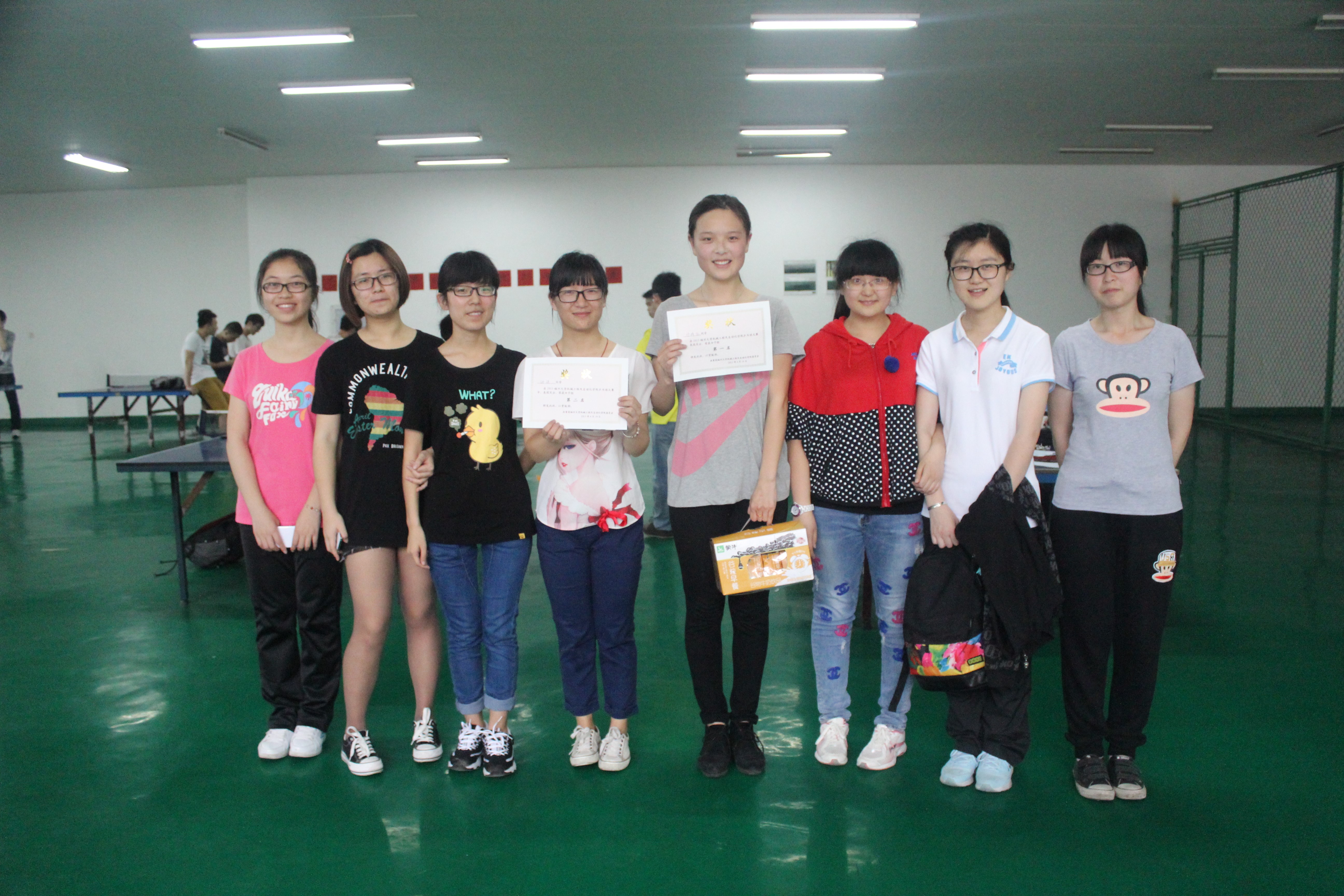 协会在2014年12月份成立了机械学院乒乓球队,目前有男、女队员共15名,代表了机械学院的最高水平。球队经过几个月的训练之后,最终选出7名队员代表机械学院在“振奋杯”乒乓球赛中获得团体第五名。