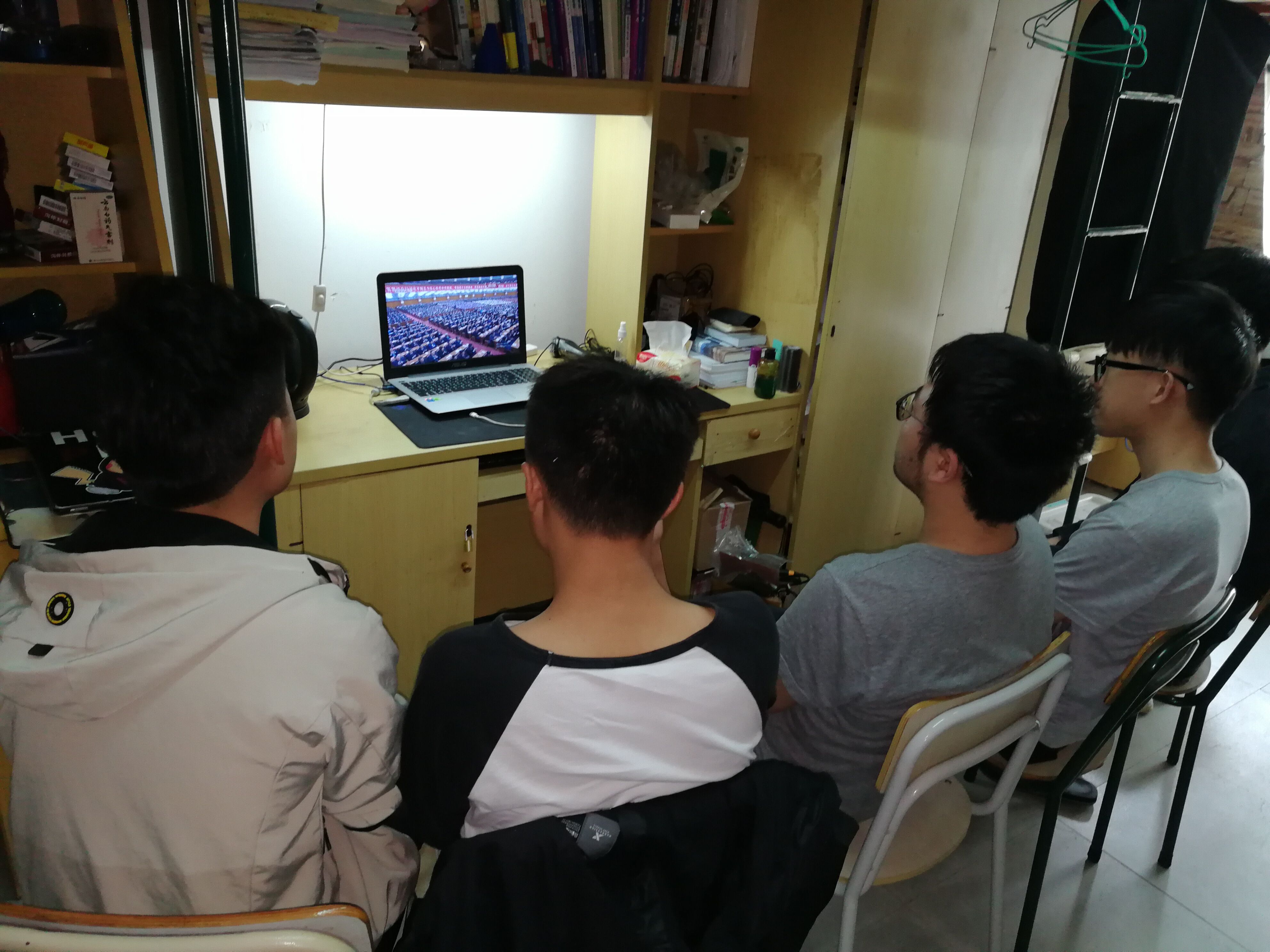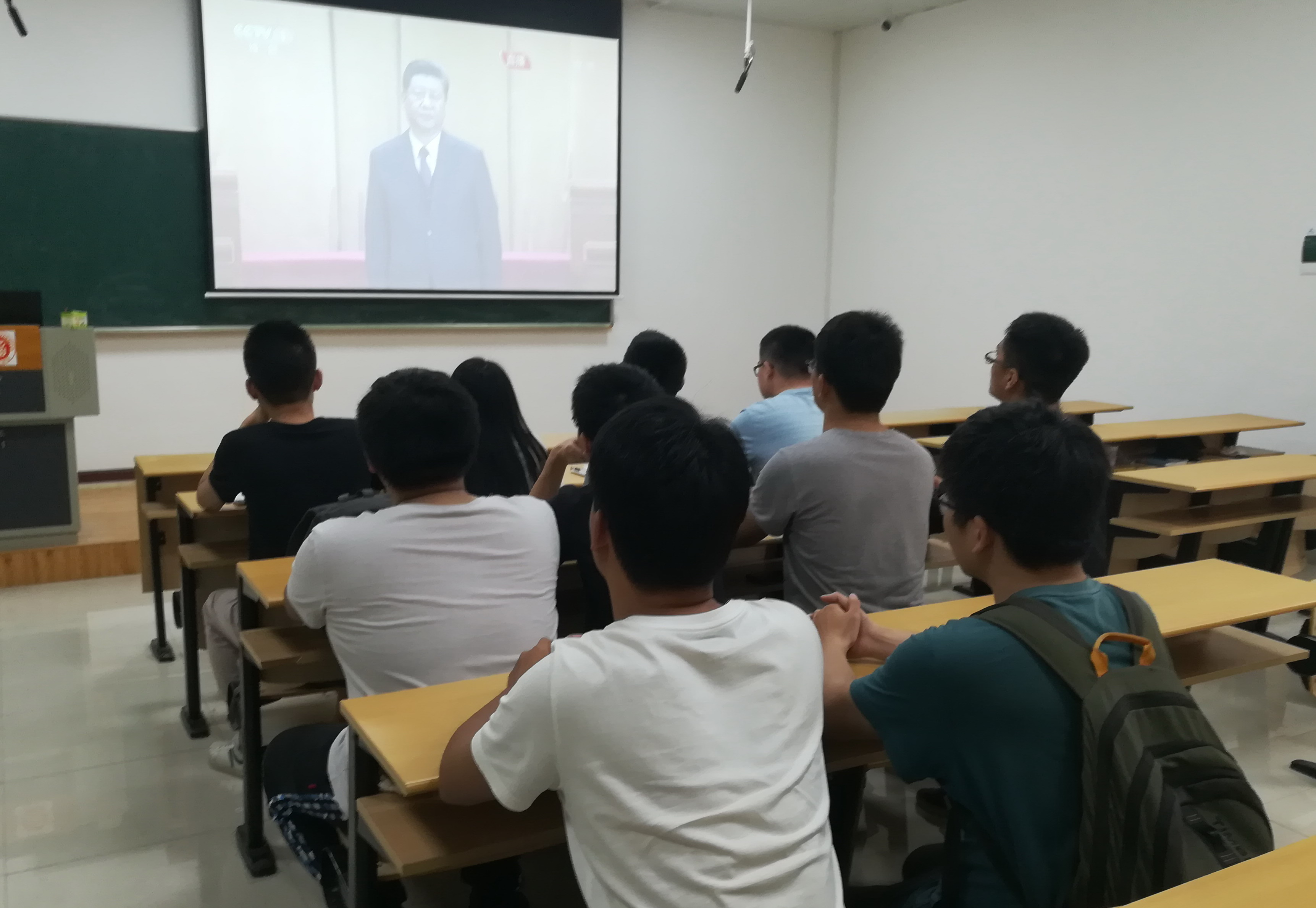 学院师生在机械北楼415共同收看“纪念五四运动100周年大会”