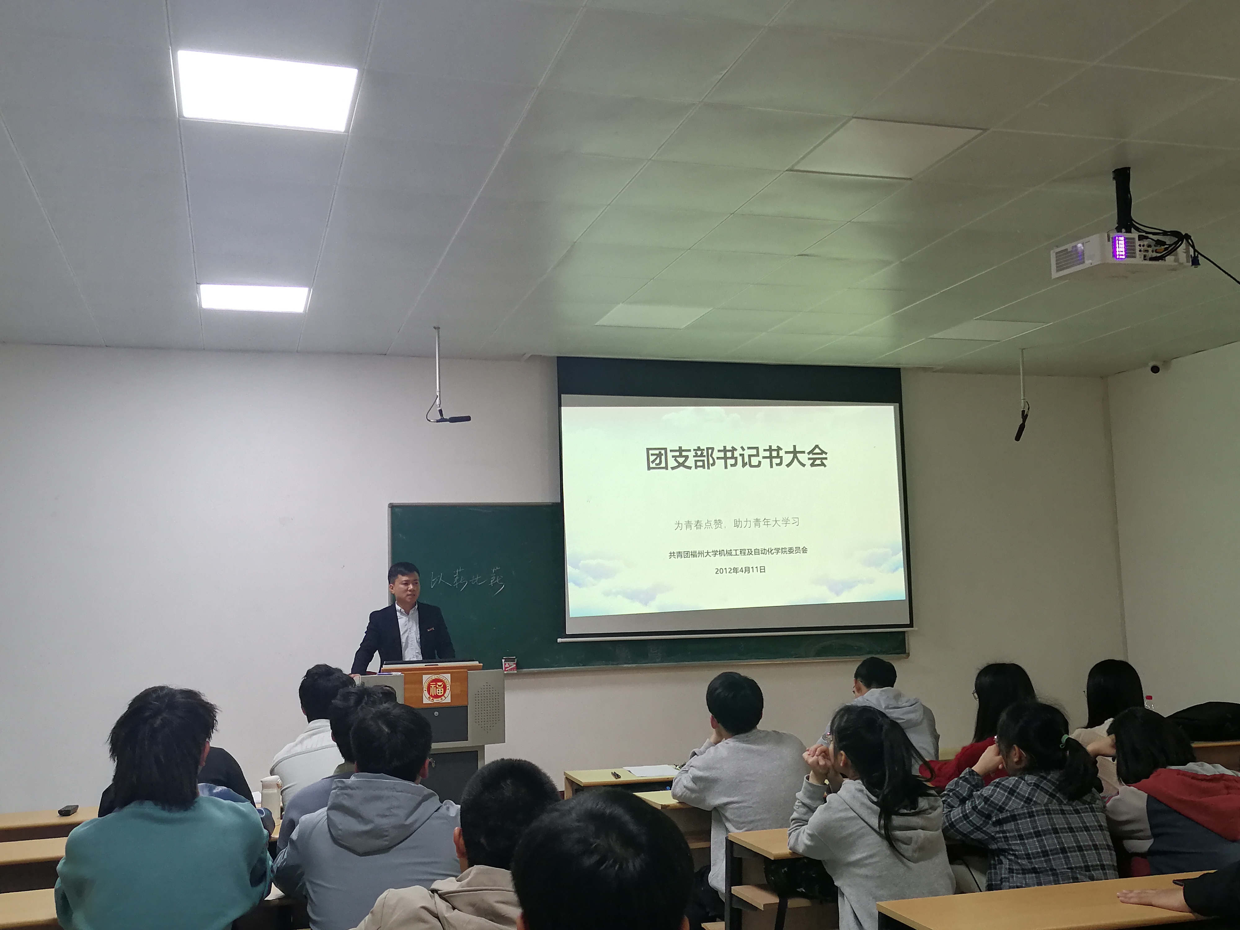团委于4月11日在机械南楼201多媒体教室召开团支部书记大会。学院团委书记林成金老师,团委、学生会主席团成员,以及各团支部书记参加会议。