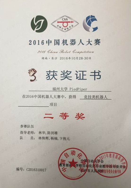 10月28日至30日,2016年中国机器人大赛在长沙红星国际会展中心举行,来自全国240余所院校近1200支参赛队同台竞技。海角视频 组建两支代表队参加了舞蹈机器人和竞技类机器人项目,获得舞蹈机器人双足人形项目一等奖和竞技类机器人项目二等奖的佳绩。