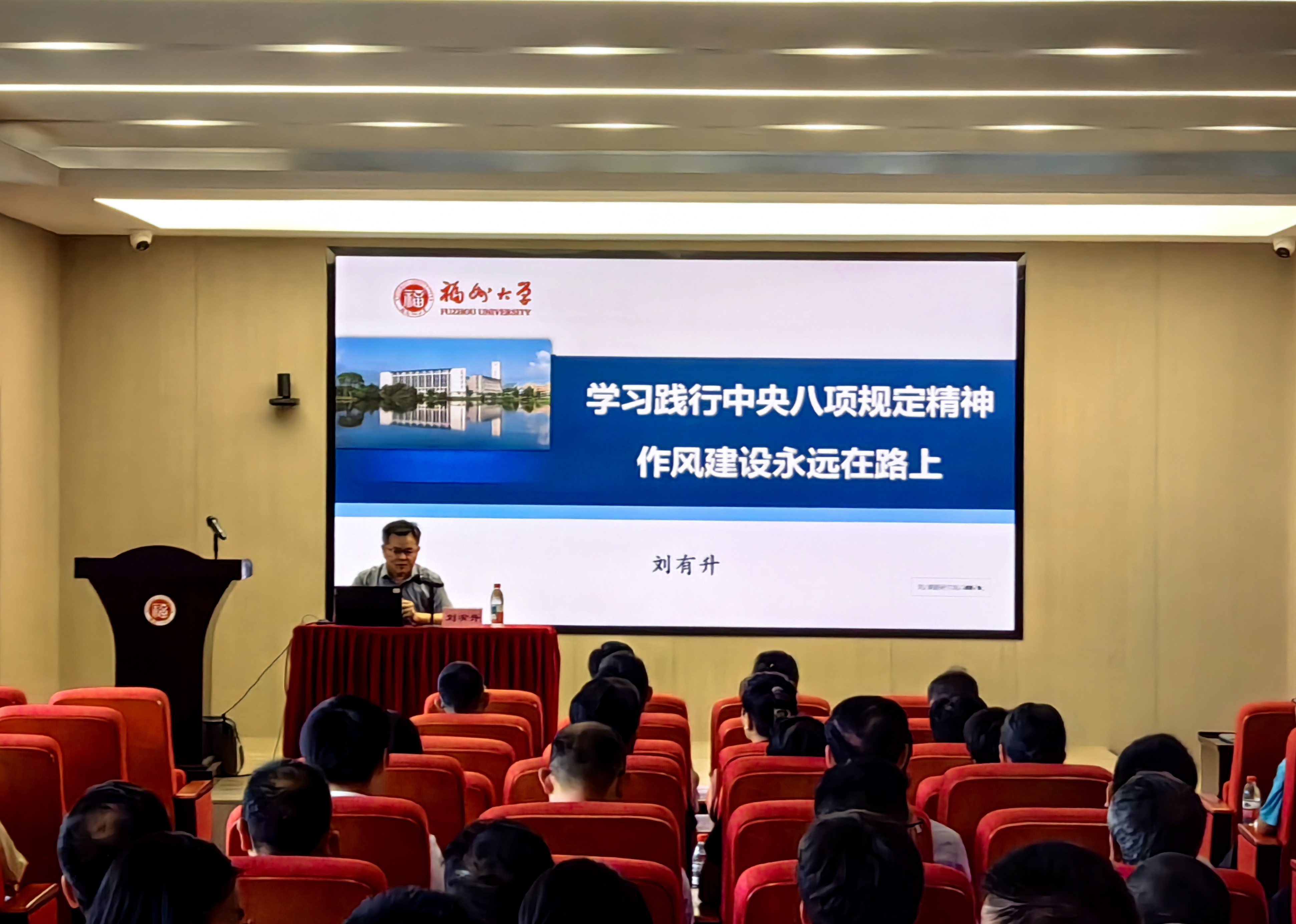 报告会邀请校马克思主义学院副院长刘有升教授作题为《学习践行中央八项规定精神:作风建设永远在路上》的专题辅导。刘有升教授从中央八项规定及其实施细则精神的时代背景、领会中央八项规定主要内容及意义、从正反两方面分析作风建设的案例等方面,结合典型案例进行了深入浅出的分析讲解,对全院党员干部切实增强贯彻落实中央八项规定及其实施细则精神,具有很强的指导性和实践性。